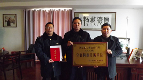 荣获“浙江省工商信用AAA级‘守合同重信用’单位”