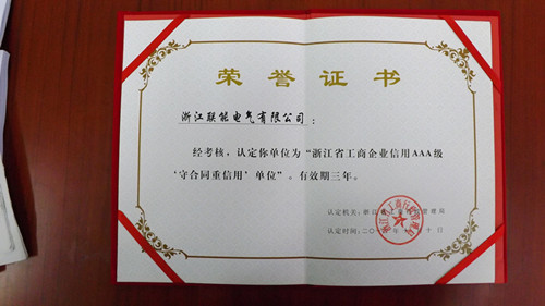 2013年1月10日,联能公司被浙江省工商行政管理局认定为“浙江省工商信用AAA级‘守合同重信用’单位”。在公司举行了简短的颁奖仪式。