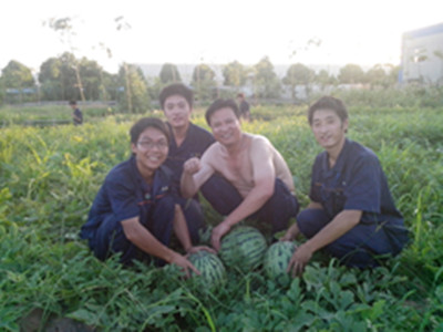 联能公司“绿色生态园”,在员工们辛勤的劳动和耕耘下, 如今已到了收获的季节, 员工们在菜地里摘取成熟的西瓜、黄瓜、茄子、辣椒等蔬果,享受着丰收的喜悦(图)。目前收获的各类蔬菜、瓜果等公司全部用于改善员工们的伙食,现已源源不断地走上了员工们的餐桌,全体员工享受到了“绿色生态园”带来的劳动果实!