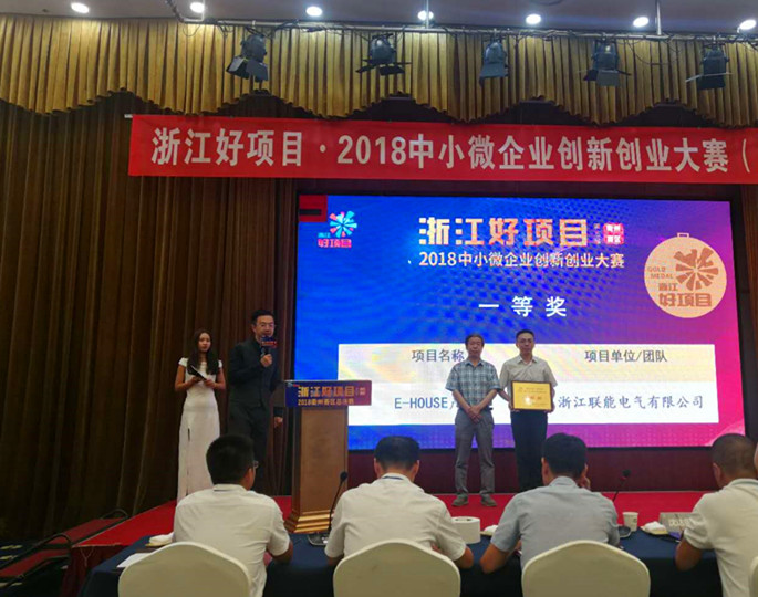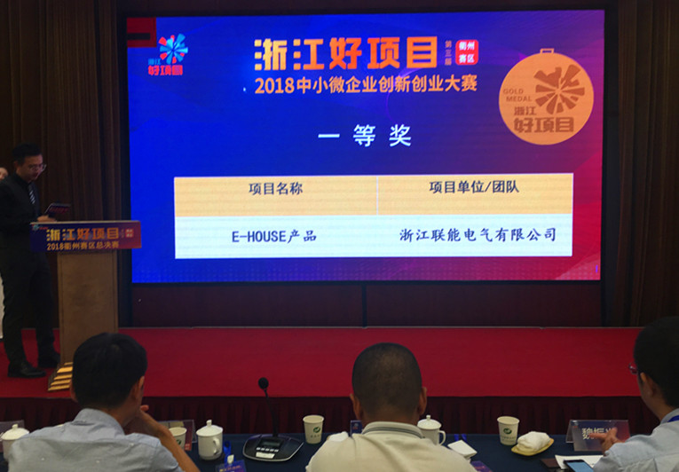 参加决赛的代表队经过激烈的路演、答辩等环节,最后由评委专家进行汇总评分,浙江联能电气高智能电气屋(英文缩写E-HOUSE)项目凭借高智能化的研发成果和市场化运作成效,在其他决赛项目双院士助阵、外援工程师现场指导、博士导师云集的比赛中独树一帜,拔得头筹,获唯一的一个一等奖。