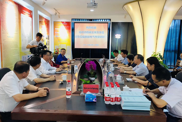 公司董事长李杰对陈副主席及各位领导的到来表示热烈欢迎并做了专题汇报。陈副主席对联能电气近年来取得的成绩表示祝贺!对公司专业化,智能化高质量发展给予了充分肯定。