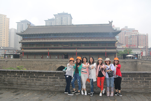 西安给我第一印象是古老,虽然现在建起了高楼大厦,商业中心,高速公路,仍抵挡不住中华五千年的历史沉淀,脑海中不时涌现昔日秦唐盛世的热闹与繁华。我们的第一站,悠久 的明城墙。沿途导游介绍了明城墙的历史,后来的修复等。漫步在明城墙上,感受着这个古都的气息,绵绵阴雨都掩盖不住大家的笑容。