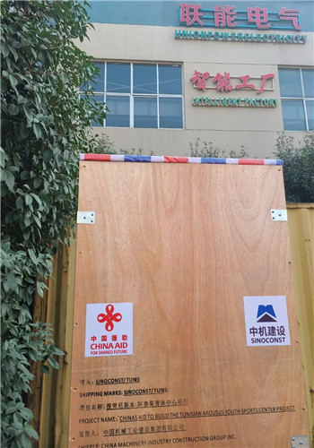满载着中国人民的深情厚意!由上海良信与联能电气共同合作的中国援助突尼斯(本,阿鲁斯)青体中心工程项目成套电气产品,今日启程发往突尼斯。