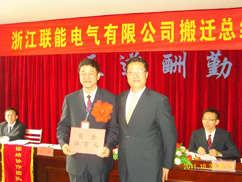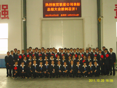 2011年10月20日,联能公司全体员工在新厂房二楼会议室召开新公司搬迁总结暨对优秀团队和突出贡献者表彰大会。大会首先由葛其运代表公司作了《精心安排 团结协助 实现新跨越》的总结发言。对在售后服务工作中作出重大贡献的姜伟等3位同志以及生产部姜有华等30位先进个人分别给予了重奖!会议对在新公司实现整体搬迁过程中表现突出的先进个人和“团结协作奖”获得者生产部团队也进行了嘉奖!