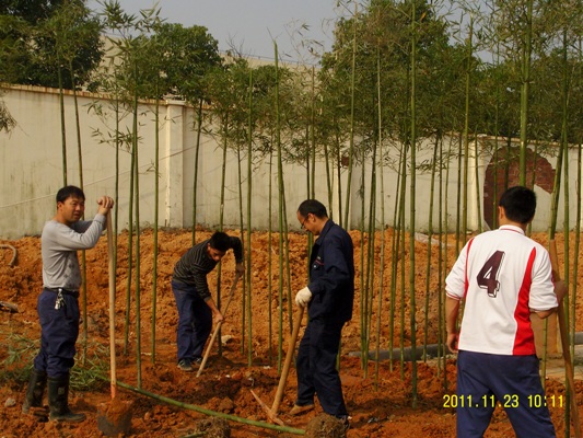 生产部、质艺部员工正在种青竹