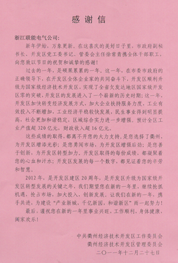 2012年1月4日,新年上班第一天,市经济技术开发区管委会副主任邵新安一行专程代表开发区管委会莅临公司向联能公司全体员工表示了新年的慰问!同时对联能公司在2011年所取得的卓越成绩还专门带来了《感谢信》!